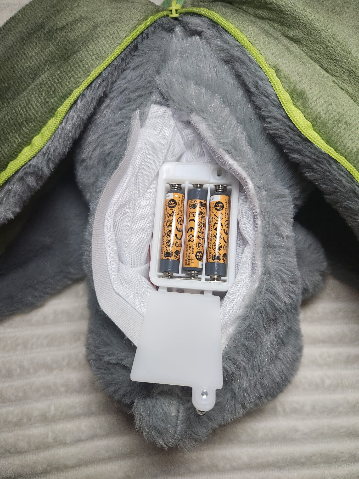 El sistema musical está integrado de forma discreta en el interior, manteniendo la estética y comodidad del peluche.